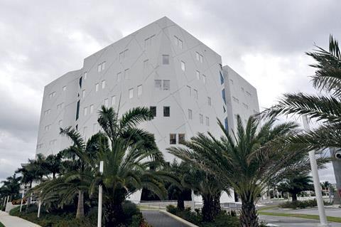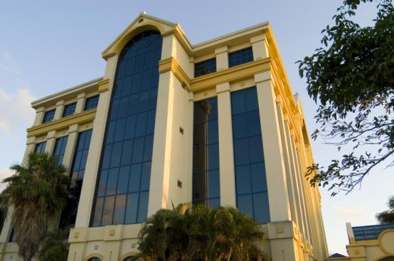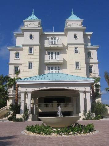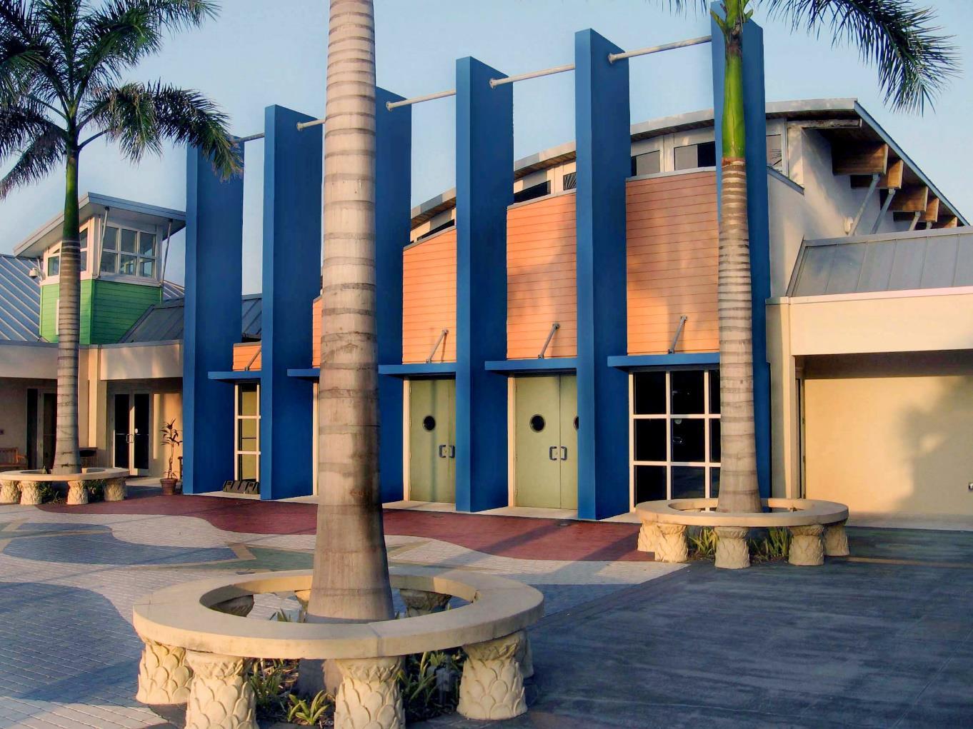 Design features of complimentary bold colors and Art Deco detailing provide a visual interest to one of the most distinctive buildings in Cayman.